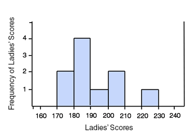 Example: To create a histogram displaying the top ten women’s figure skating scores for the 2010 Winter Olympics.